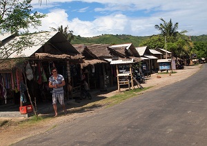 into our food and droning 'you wanna bracelet, buy a bracelet, good price, cheap for you, special lunchtime price...' in one long continuous sentence. Over and over again. More children lurked around the entrance of the open air restaurant, just in case we bought up all the bracelets these three were touting and were on the lookout for more. Who knows, maybe we have a whole bunch of friends at home that would just love if we bought them a wonderfully local Lombok souvenir. Nothing says 'I was thinking about you while on vacation' like a cheap tacky hemp and shell bracelet. Maybe you will ALL be getting a bracelet next Christmas. Don't get your hopes up. This was the first time we had seen children selling things, and it was at first, shocking, and then just really sad. Each kid had a piece of cardboard that folded into three. Slits were cut at the top and bottom of the board so that the bracelets could be stretched from end to end, displaying their quality. 'Did you make the bracelets?' we asked. 'No,' the kid would reply, '20,000Rp.' 'Where did you get them?' we asked. 'Ok, for you, 15,000Rp,' would be the response. Boy they learn how to charm early here.